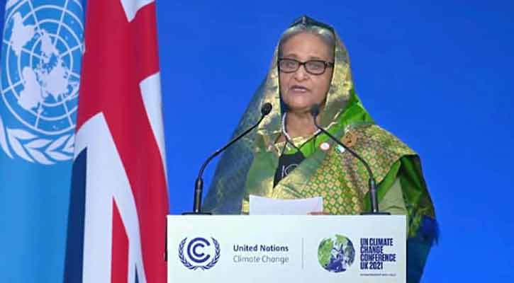 স্বল্প খরচে গ্রিন এবং ক্লিন প্রযুক্তি হস্তান্তরের মাধ্যমে জলবায়ু ক্ষতিগ্রস্ত দেশগুলোকে সহায়তার করার প্রয়োজনীয়তার কথা তুলে ধরেন প্রধানমন্ত্রী।