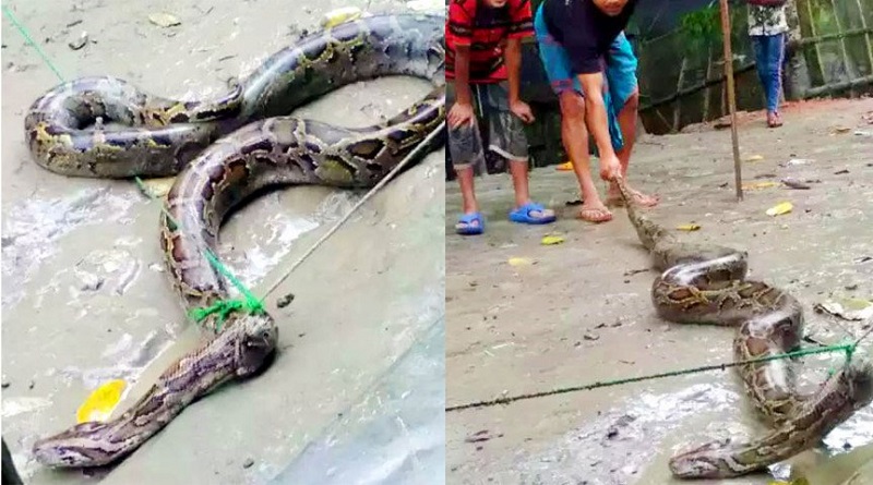 বেতমোর ইউনিয়ন পরিষদের সদস্য মো. শাহ আলম সিকদার বিষয়টি নিশ্চিত করে জানান, সুন্দরবনের অজগরটি স্থানীয় উলুবাড়িয়া গ্রামের কৃষক সফিজ উদ্দিনের মুরগির ছানা খেতে রাতে খোপে ঢুকে পড়ে। সকালে পরিবারের এক শিশু হাস-মুরগির খোপ খুলতে গেলে অজগরটি দেখে চিৎকার দেয়। পরে গ্রামবাসী জড়ো হয়ে অজগরটিকে ধরে ফেলে। আট ফুট লম্বা অজগরটির ওজন আনুমানিক ২৫ কেজি। গ্রামবাসীর কাছ থেকে অজগরটি উদ্ধার করে সুন্দরবনে অবমুক্তির জন্য ওই গ্রামের ইব্রাহিম হাওলাদারের জিম্মায় রেখে দেয়। পরে আজ বিকেলের দিকে বনবিভাগে হস্তান্তর করা হয়।