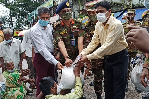সুনামগঞ্জে চলমান লকডাউনে কর্মহীন পরিবারের মাঝে সেনাবাহিনীর উদ্যোগে খাদ্য সামগ্রী বিতরণ করা হয়েছে।
