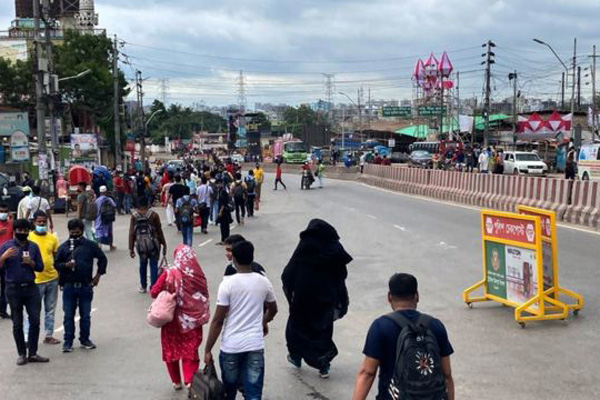কঠোর লকডাউনে হেঁটে হেঁটে ঢাকায় প্রবেশ