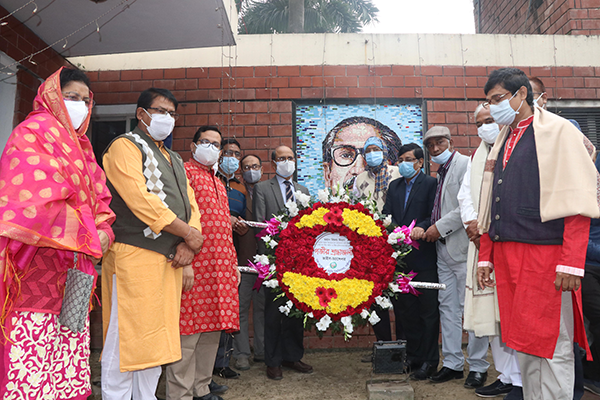 এরপর বিশ্ববিদ্যালয়ের উপাচার্য অধ্যাপক ড. এম. হাবিবুর রহমানের নেতৃত্বে মহান মুক্তিযুদ্ধে শহীদদের স্মৃতির প্রতি শ্রদ্ধা জানিয়ে বিশ্ববিদ্যালয়ের শহীদ মিনারে এবং মূল ফটকে অবস্থিত সর্বকালের সর্বশ্রেষ্ঠ বাঙালি জাতির পিতা বঙ্গবন্ধু শেখ মুজিবুর রহমানের প্রতিকৃতিতে পুষ্পস্তবক অর্পণ করেন বিশ্ববিদ্যালয়ের শিক্ষক, কর্মকর্তা ও কর্মচারীবৃন্দ। এছাড়া পর্যায়ক্রমে বিশ্ববিদ্যালয়ের শিক্ষক সমিতি, অফিসার্স এসোসিয়েশন, ছাত্র সংগঠন, কর্মচারী সমিতিসহ বিভিন্ন অঙ্গ-সংগঠনের পক্ষ থেকে বঙ্গবন্ধুর প্রতিকৃতি ও শহীদ মিনারে পুষ্পস্তবক অর্পণ করা হয়। এরপর একটি বিজয় শোভাযাত্রা ক্যাম্পাস প্রদক্ষিণ করে।