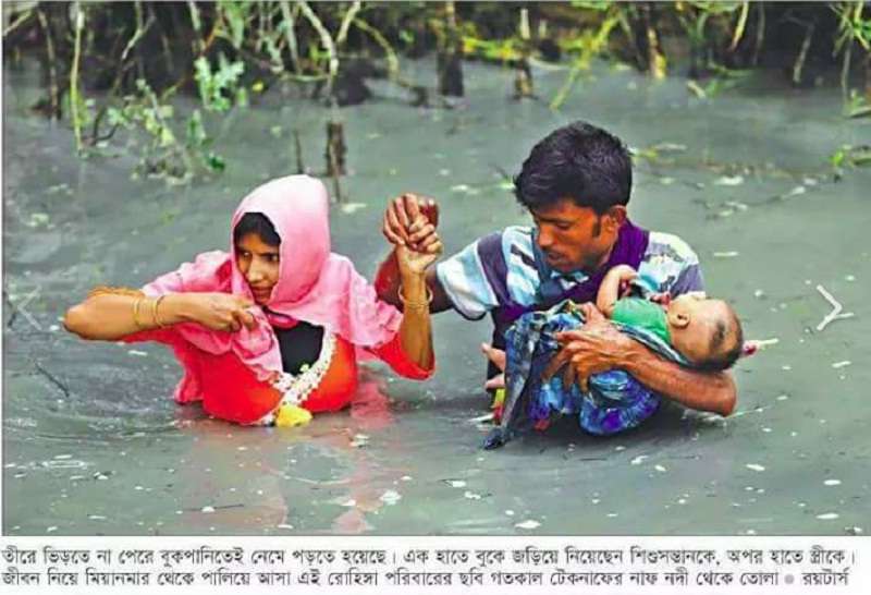 গতকাল ফেসবুকে লগিন করতে এই ছবিটা দেখতে পাই। ছবিটার উপর আমার চোখ আটকে যায়। এদের জায়গায় নিজেকে কল্পনা করি। আমারও একটা সন্তান আছে। বাংলাদেশে জন্ম না হয়ে যদি আমার জন্মটা রাখাইন রাজ্যেও হতে পারতো। আমিও তখন এই পরিস্থিতিতে পড়তে পারতাম।