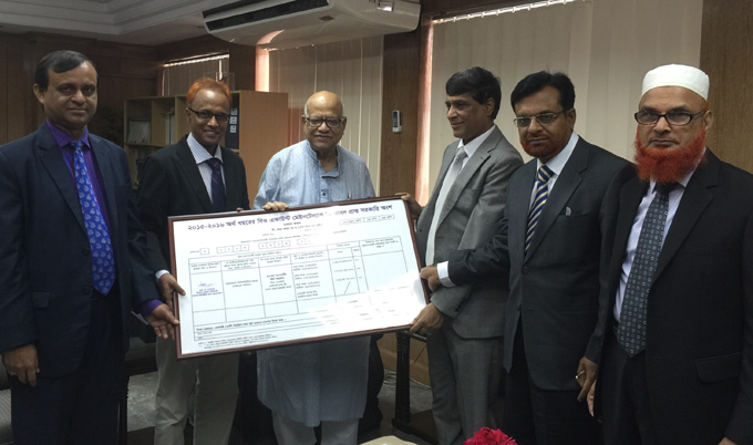 অর্থ মন্ত্রণালয়ে বুধবার (৩ আগস্ট) জমা দেওয়া চেকের তিনটির অনুলিপি অর্থমন্ত্রী আবুল মাল আবদুল মুহিতের কাছে হস্তান্তর করেন বিএসইসি’র চেয়ারম্যান ড. এম. খায়রুল হোসেন।