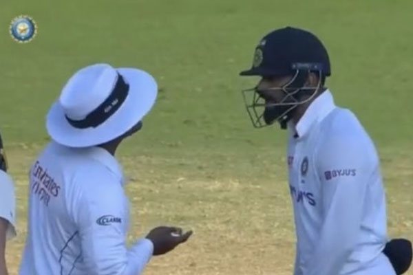লেগ বিফোরের আবেদনে আম্পায়ারের সিদ্ধান্ত পছন্দ হয়নি। বেঁচে গিয়েছিলেন ইংল্যান্ড অধিনায়ক জো রুট। এতেই মেজাজ হারালেন ভারতের অধিনায়ক বিরাট কোহলি। তাকে দেখা গেল অনফিল্ড আম্পায়ার নীতিন মেননের সঙ্গে উত্তেজিত হয়ে বাদানুবাদ করতে।