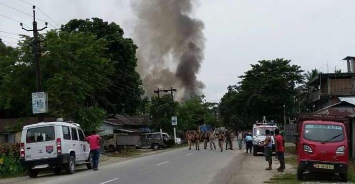 Smoke billowing near the site of the attack near Kokrajhar in Inida's Assam.
